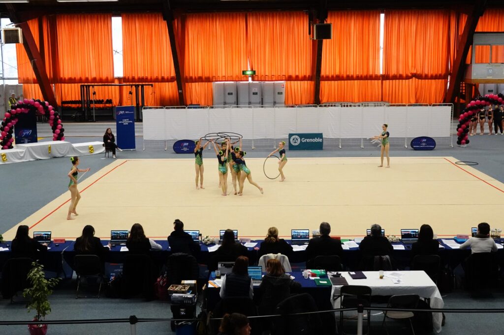 Dimanche 23 février, la Halle Clemenceau de Grenoble a accueilli la première étape de la saison pour les ensembles de gymnastique rythmique lors de la compétition départementale. L’USSE Gymnastique était bien représentée avec deux duos et un ensemble en catégorie open, ainsi que trois ensembles en catégorie fédérale (TFA, TFB et TFC), regroupant un total de 32 gymnastes, âgés de 10 à 44 ans.
